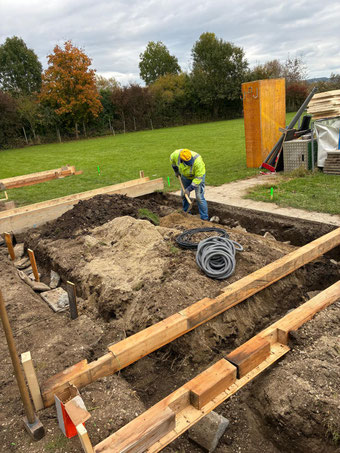 Dank einiger fleißiger Hände nimmt der neue Schuppen schnell Formen an.